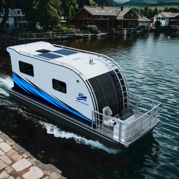 One of the primary product application scenarios for the Allhouse Boat HB-790 is as a yacht house. Its sturdy construction, with tube thickness of 4.0mm and deck thickness of 20mm, makes it suitable for long journeys on the water, providing a comfortable and secure living space for residents.